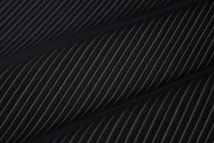 ・糸に微細な穴が沢山開いた糸(ミクロ クレータ)を使用し、 濃染黒加工をしています ・シャトル織機でカラミ織りをしています ・さらりとした風合い