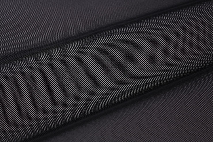 ・糸に微細な穴が沢山開いた糸(ミクロ クレータ)を使用し、 濃染黒加工をしています ・シャットル織機でカラミ織りをしています ・さらりとした風合い